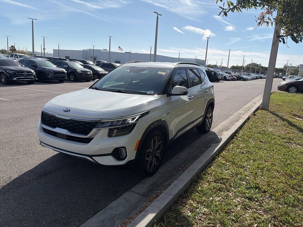 25/30 City/Highway MPG Forward Collision-Avoidance Assist-Pedestrian Blind-Spot Collision Warning (BCW) Blind-Spot Collision-Avoidance Assist-Rear (BCA-R) Rear Cross-Traffic Collision Warning & Avoidance Assist Lane Keeping Assist (LKA) & Lane Following Assist (LFA) Lane Departure Warning (LDW) Driver Attention Warning (DAW) High Beam Assist (HBA), Remote Start / Remote Climate (Key Fob).2021 Kia Seltos AWD 7-Speed Automatic I4 4D Sport Utility